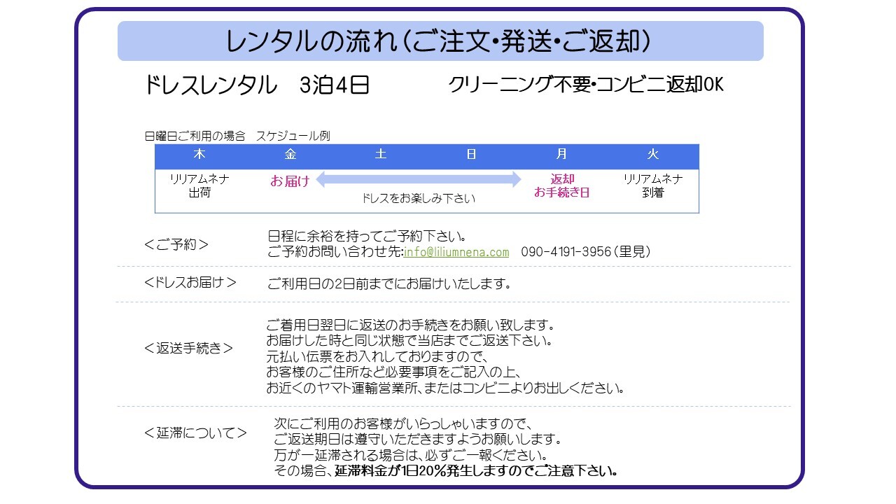 ご着用日翌日に返送のお手続きをお願い致します。
