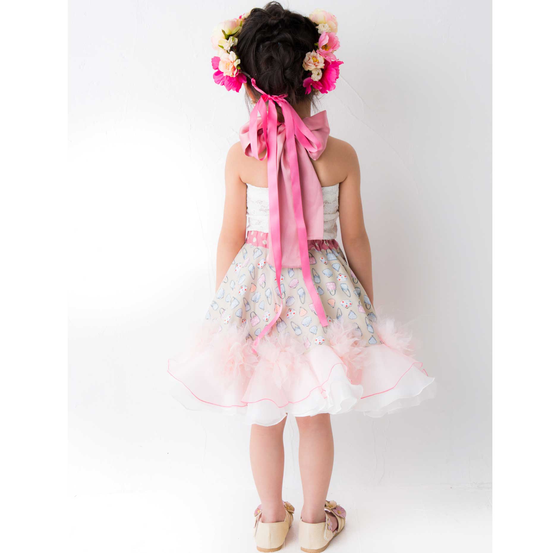 ピンクドット バック柄ホルターネックドレス【レンタル】80㎝~115㎝位<HD5>